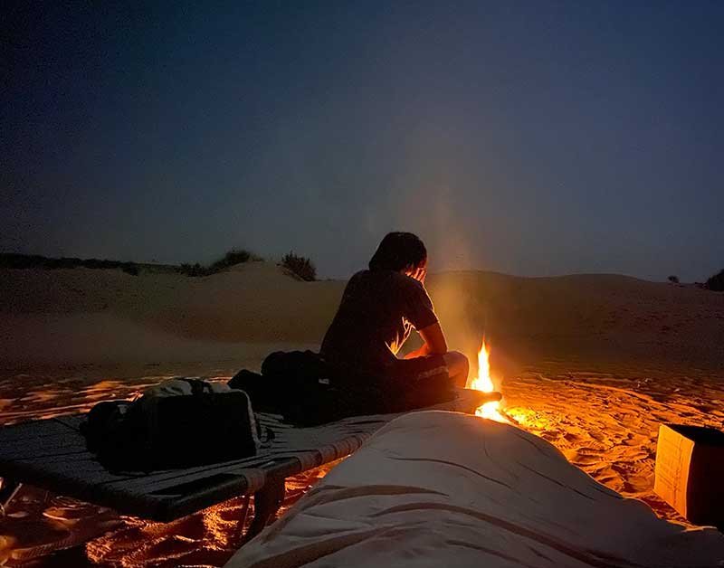 Dinner on the Dunes: As the sun dips below the horizon, painting the sky with vibrant hues, prepare for a magical Dinner on the Dunes. Indulge in a delicious, authentic Rajasthani feast served right under the open desert sky. The flickering lanterns, the gentle breeze, and the captivating silence of the desert create an enchanting ambiance for a dining experience that is truly unforgettable and romantic.